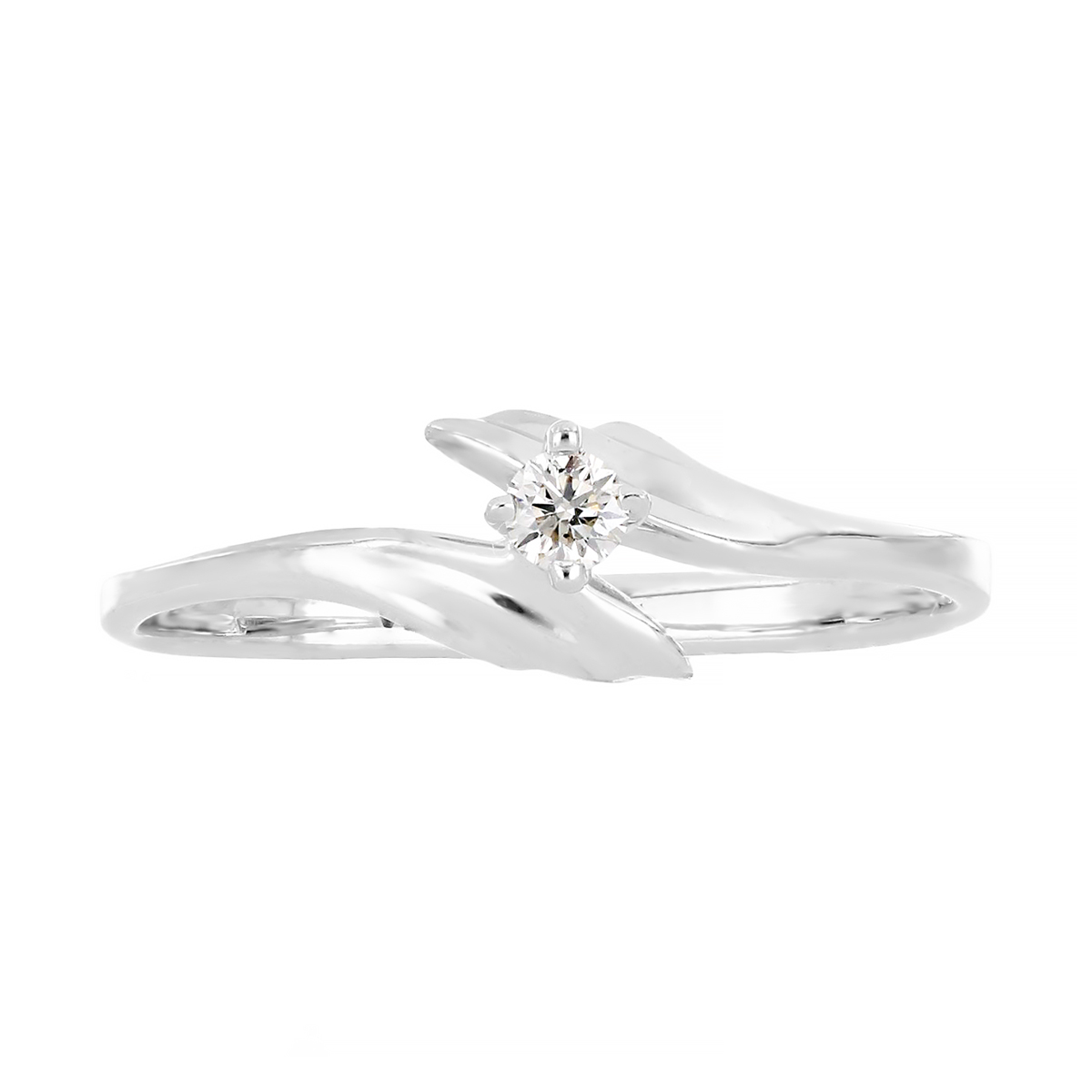 Anillo Solitario con Centro 0.06 Quilates de Diamante en Oro Blanco de 14 kt