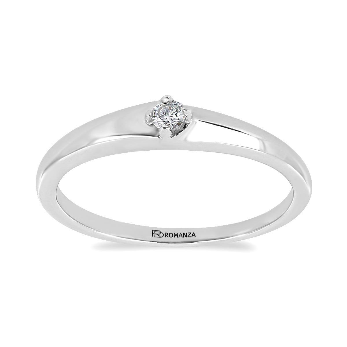 Anillo Solitario con Centro 0.15 Quilates de Diamante en ORO BLANCO de 14 kt