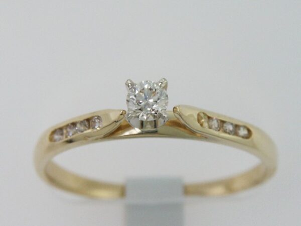 Anillo Solitario con Centro 0.15 Quilates y Montadura 0.08 Quilates de Diamante en Oro Amarillo de 14 kt