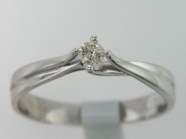 Anillo Solitario con Centro 0.10 Quilates de Diamante en Oro Blanco de 14 kt
