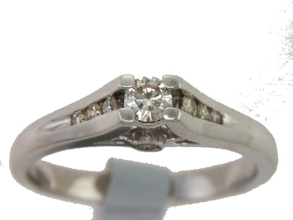 Anillo Solitario con Centro 0.15 Quilates y Montadura 0.08 Quilates de Diamante en ORO BLANCO de 14 kt
