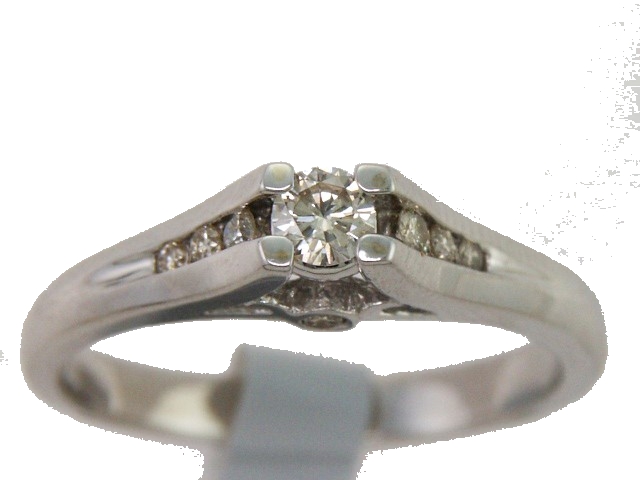 Anillo Solitario con Centro 0.20 Quilates y Montadura 0.12 Quilates de Diamante en ORO BLANCO de 14 kt