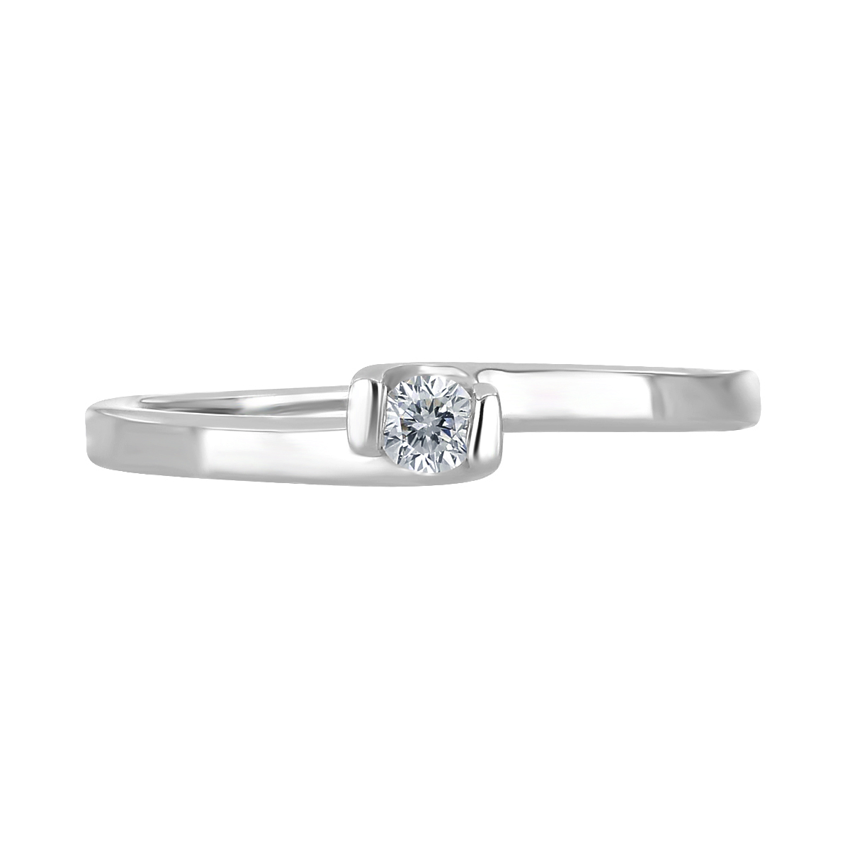 Anillo Solitario con Centro 0.10 Quilates de Diamante en Oro Blanco de 14 kt