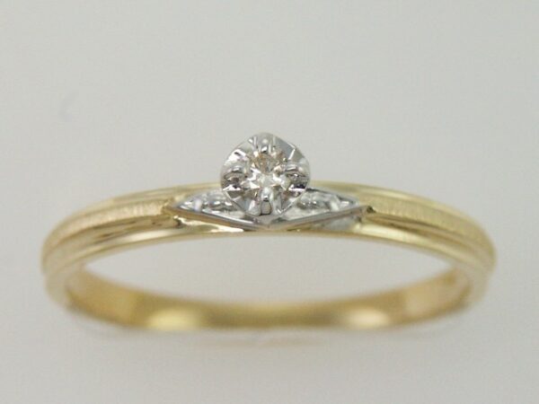 Anillo Solitario Ilusión con Centro 0.06 Quilates de Diamante en Oro Combinado de 14 kt