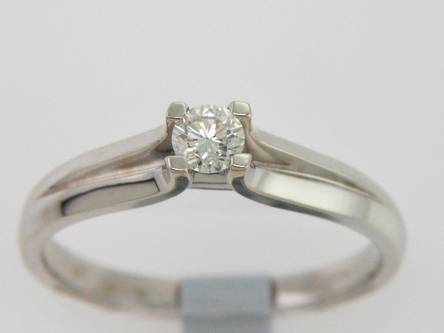 Anillo Solitario con Centro 0.20 Quilates de Diamante en Oro Blanco de 14 kt