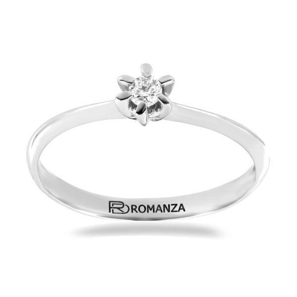 Anillo Solitario con Centro 0.07 Quilates de Diamante en Oro Blanco de 14 kt