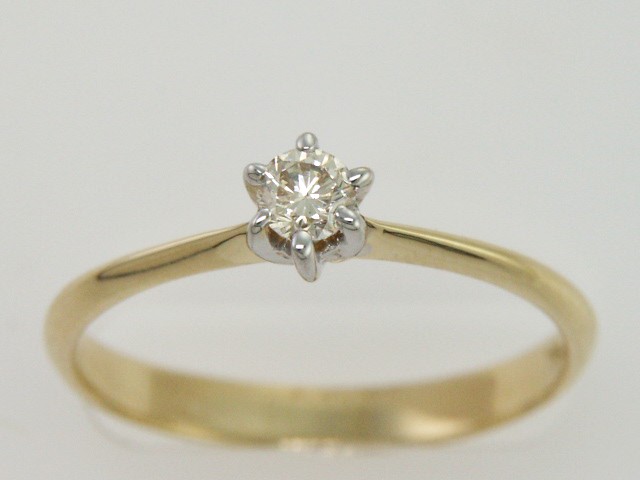 Anillo Solitario con Centro 0.17 Quilates de Diamante en Oro Amarillo de 14 kt