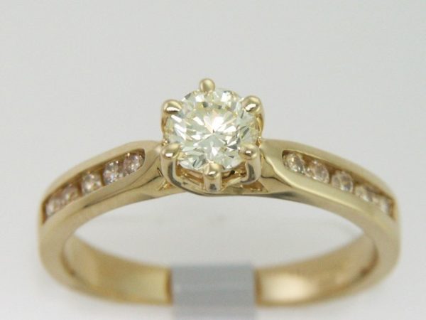 Anillo Solitario con Centro 0.40 Quilates y Montadura 0.03 Quilates de Diamante en Oro Amarillo de 14 kt