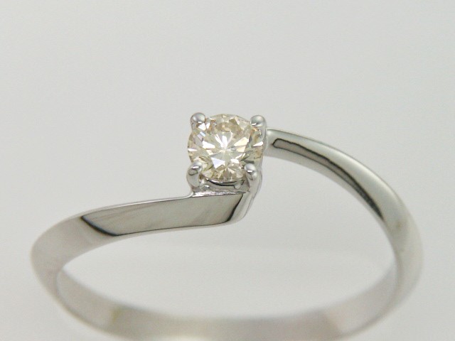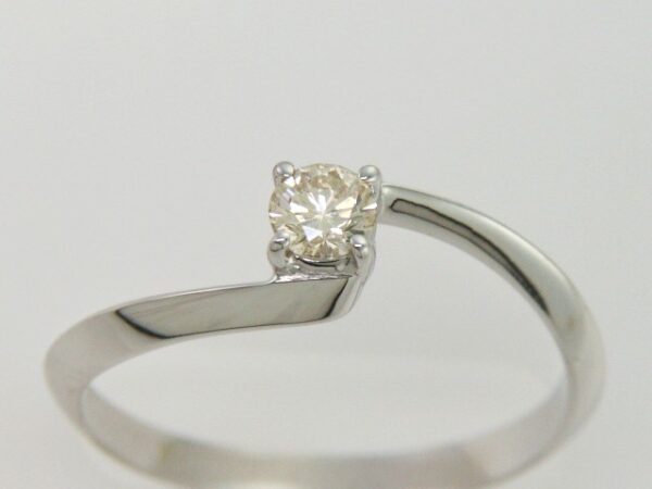 Anillo Solitario con Centro 0.15 Quilates de Diamante en ORO BLANCO de 14 kt