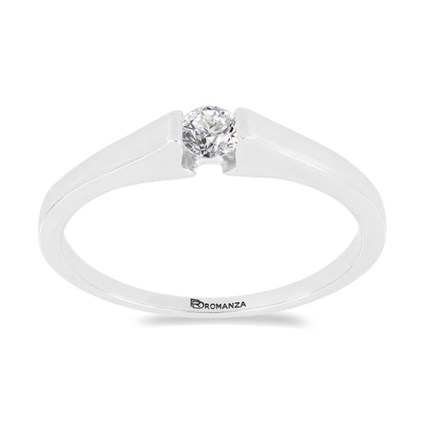 Anillo Solitario con Centro 0.15 Quilates de Diamante en ORO BLANCO de 14 kt