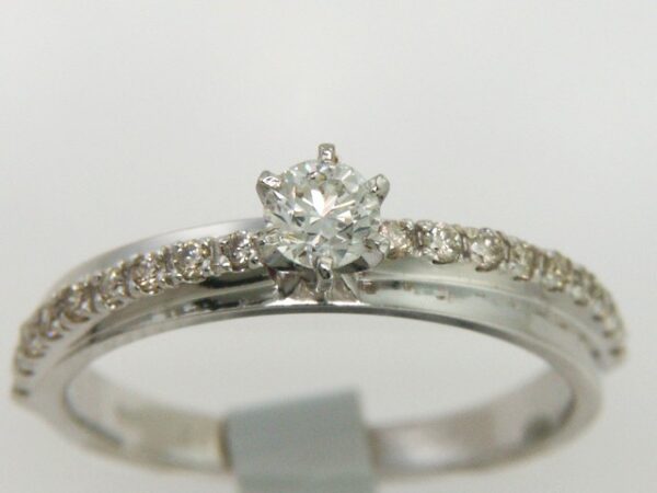 Anillo Solitario con Centro 0.25 Quilates y Montadura 0.18 Quilates de Diamante en Oro Blanco de 14 kt