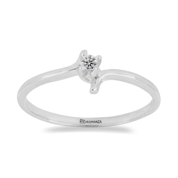 Anillo Solitario con Centro 0.04 Quilates de Diamante en Oro Blanco de 14 kt