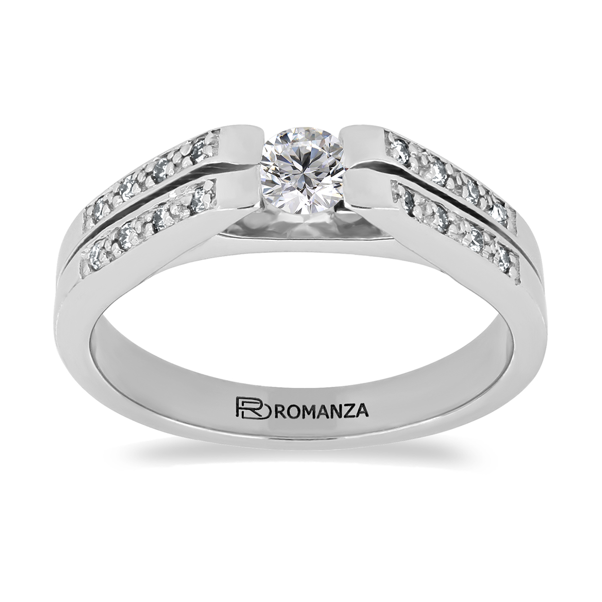 Anillo Solitario con Centro 0.30 Quilates y Montadura 0.12 Quilates de Diamante en ORO BLANCO de 14 kt
