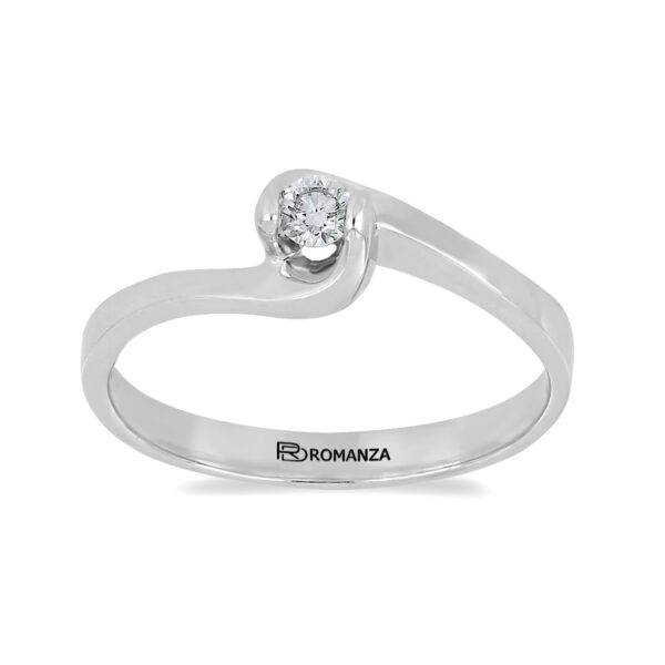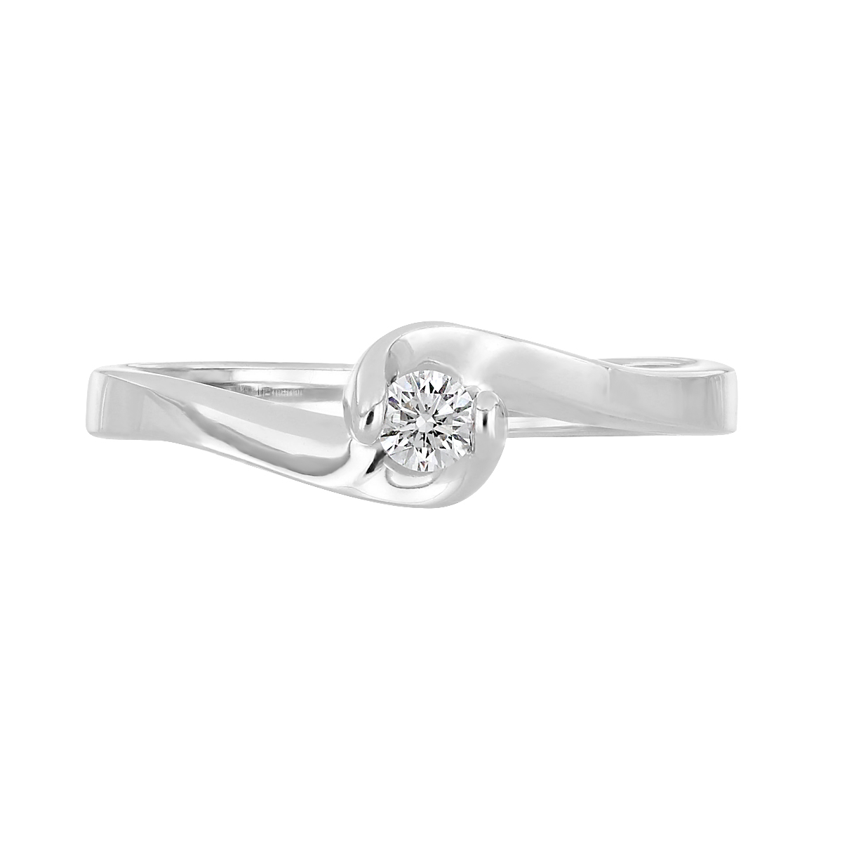 Anillo Solitario con Centro 0.10 Quilates de Diamante en Oro Blanco de 14 kt