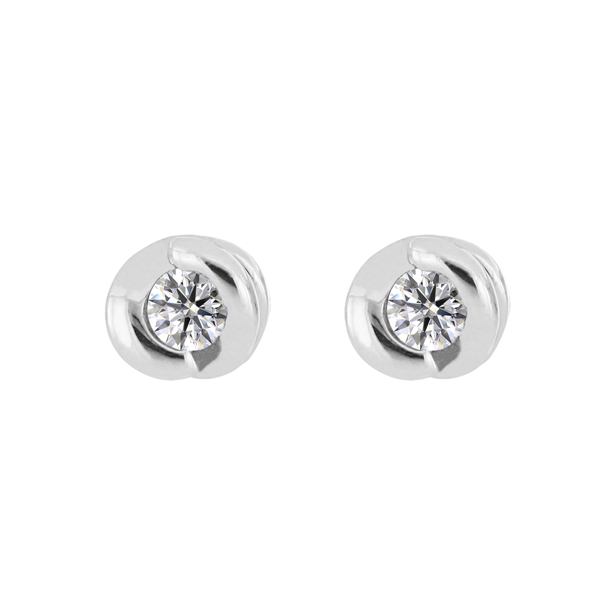 Aretes Bebé o Niña con Montadura 0.05 Quilates de Diamante en Oro Blanco de 14 kt