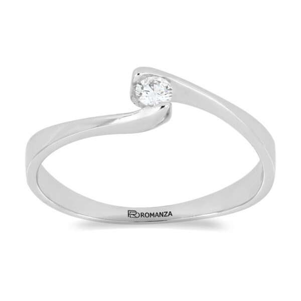 Anillo Solitario con Centro 0.08 Quilates de Diamante en Oro Blanco de 14 kt