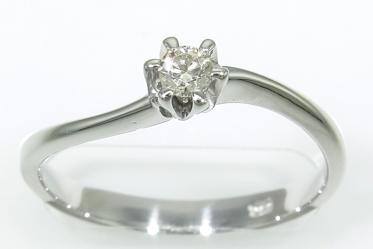 Anillo Solitario con Centro 0.12 Quilates de Diamante en Oro Blanco de 14 kt