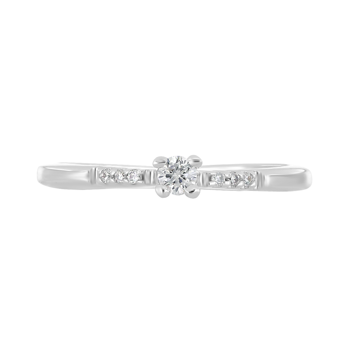 Anillo Solitario con Centro 0.15 Quilates y Montadura 0.08 Quilates de Diamante en ORO BLANCO de 14 kt