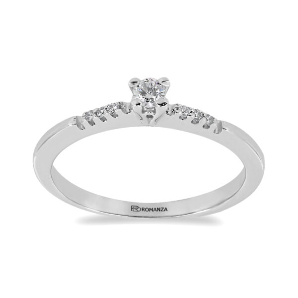 Anillo Solitario con Centro 0.17 Quilates y Montadura 0.05 Quilates de Diamante en Oro Blanco de 14 kt