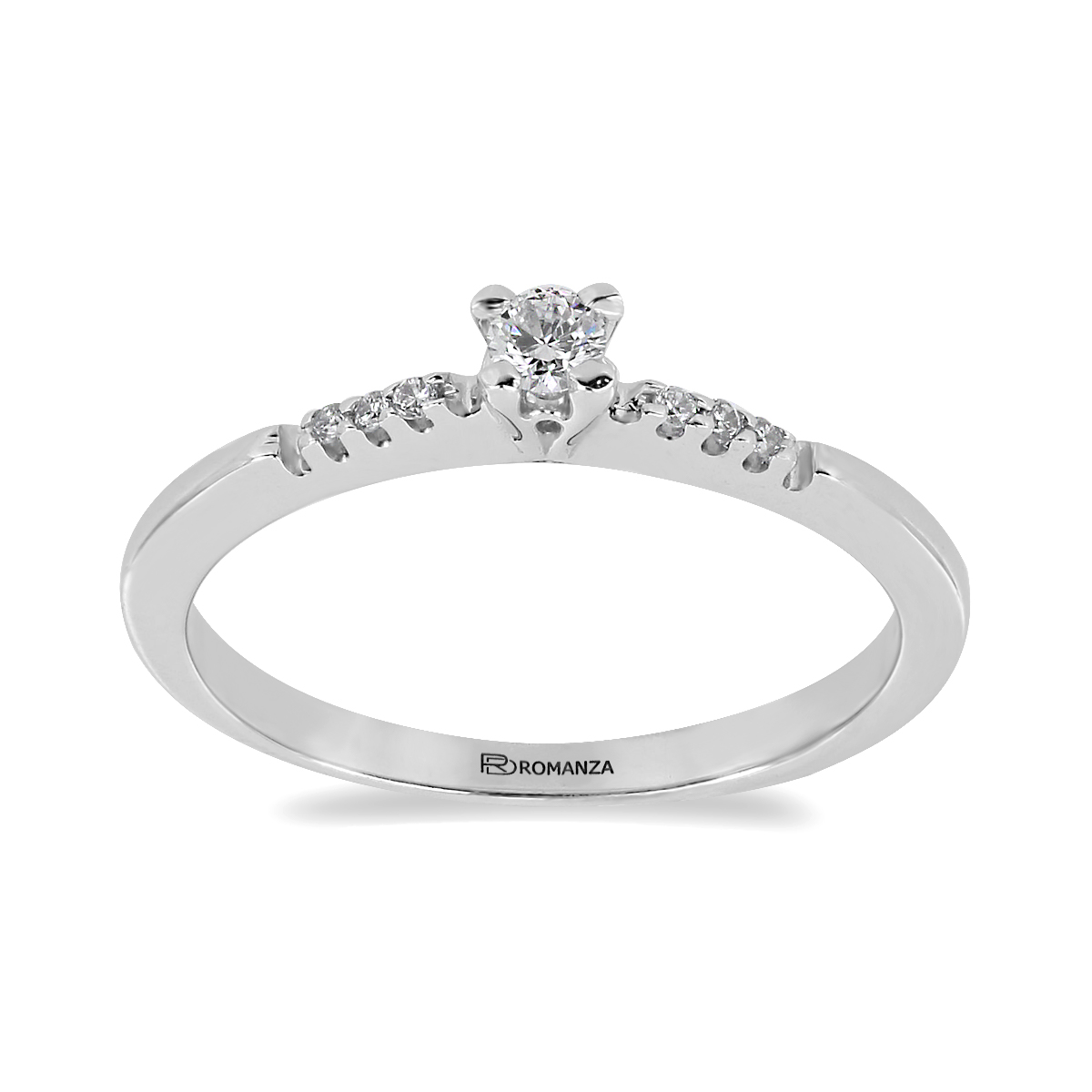 Anillo Solitario con Centro 0.10 Quilates y Montadura 0.06 Quilates de Diamante en Oro Blanco de 14 kt