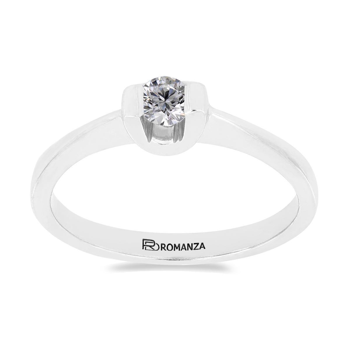 Anillo Solitario con Centro 0.17 Quilates de Diamante en Oro Blanco de 14 kt