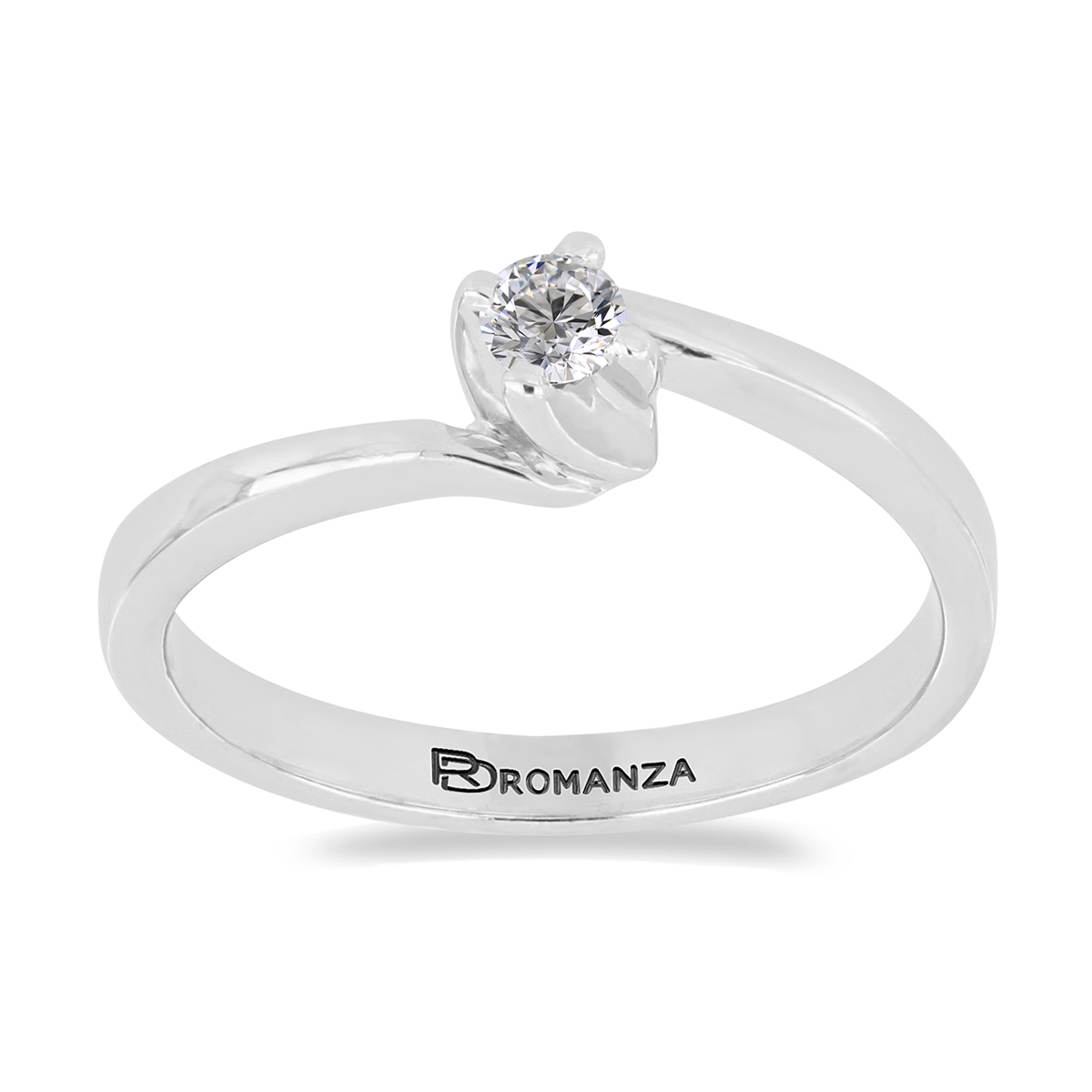 Anillo Solitario con Centro 0.12 Quilates de Diamante en Oro Blanco de 14 kt