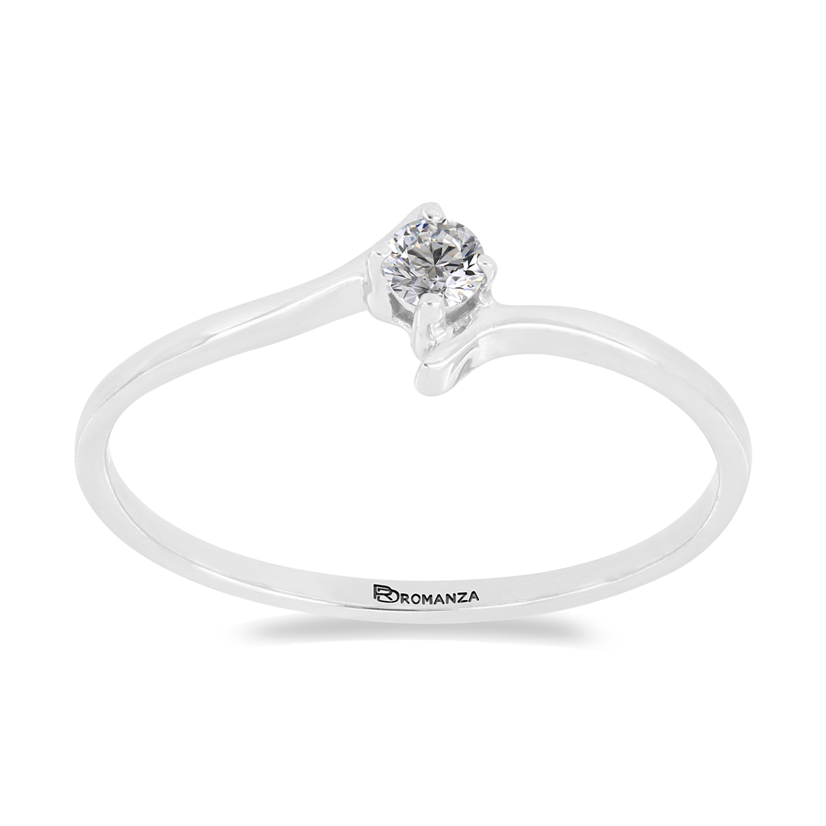 Anillo Solitario con Centro 0.15 Quilates de Diamante en ORO BLANCO de 14 kt