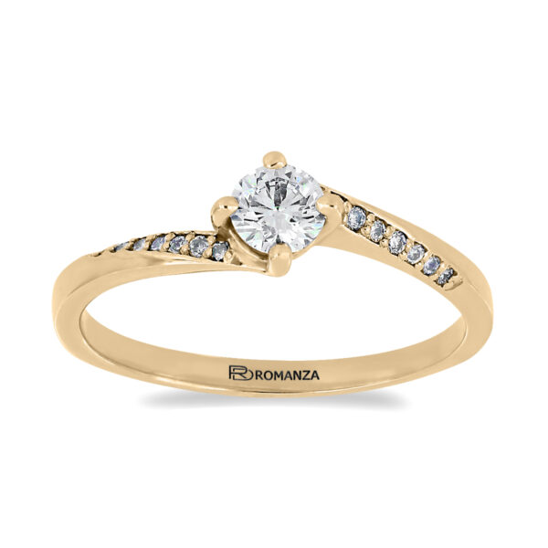 Anillo Solitario con Centro 0.30 Quilates y Montadura 0.08 Quilates de Diamante en Oro Amarillo de 14 kt