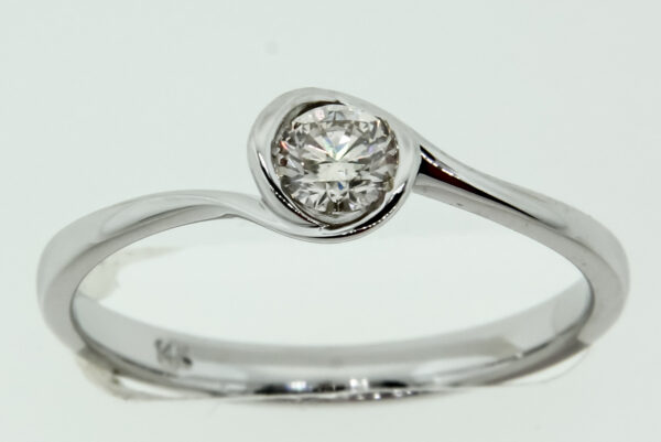 Anillo Solitario con Centro 0.20 Quilates de Diamante en Oro Blanco de 14 kt