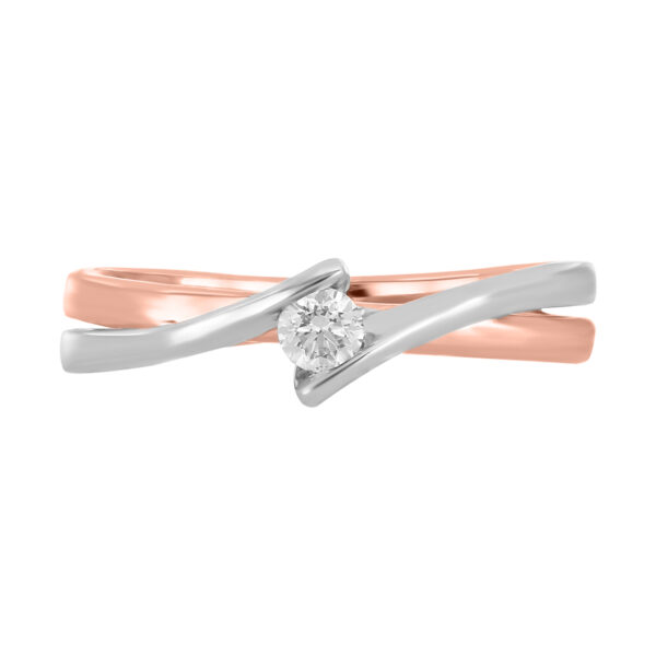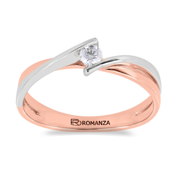 Anillo Solitario con Centro 0.10 Quilates de Diamante en Oro Combinado de 14 kt