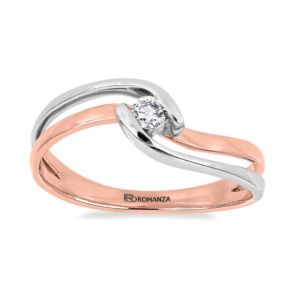Anillo Solitario con Centro 0.10 Quilates de Diamante en Oro Combinado de 14 kt