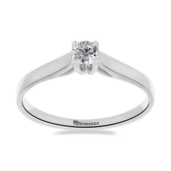 Anillo Solitario con Centro 0.20 Quilates de Diamante en Oro Blanco de 14 kt