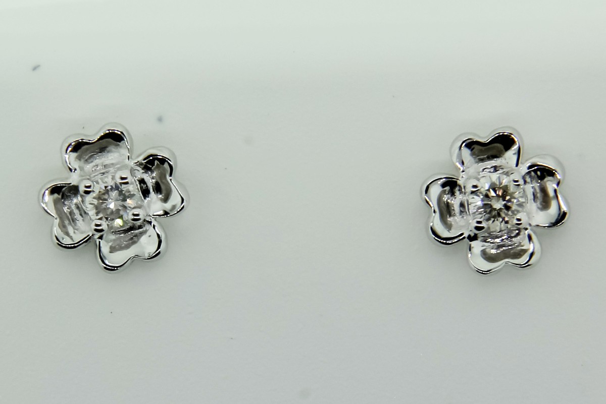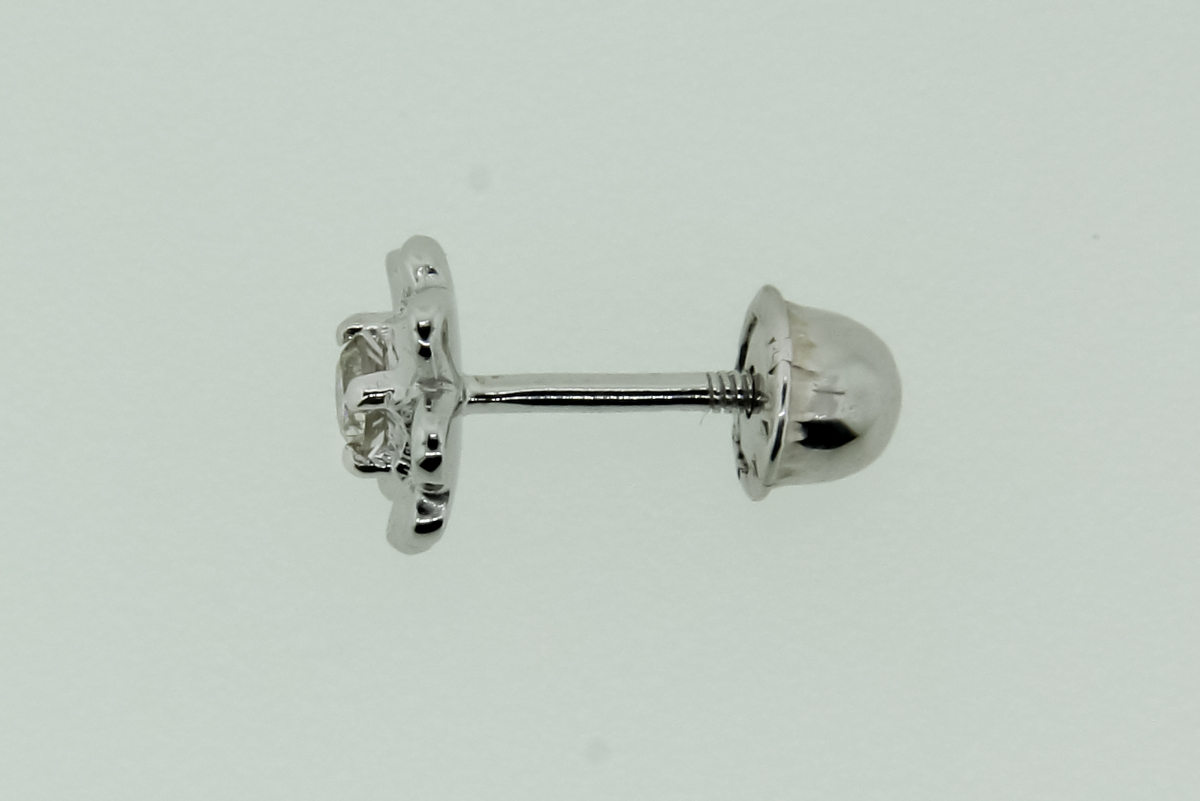 Aretes Bebé o Niña con Montadura 0.08 Quilates de Diamante en Oro Blanco de 14 kt