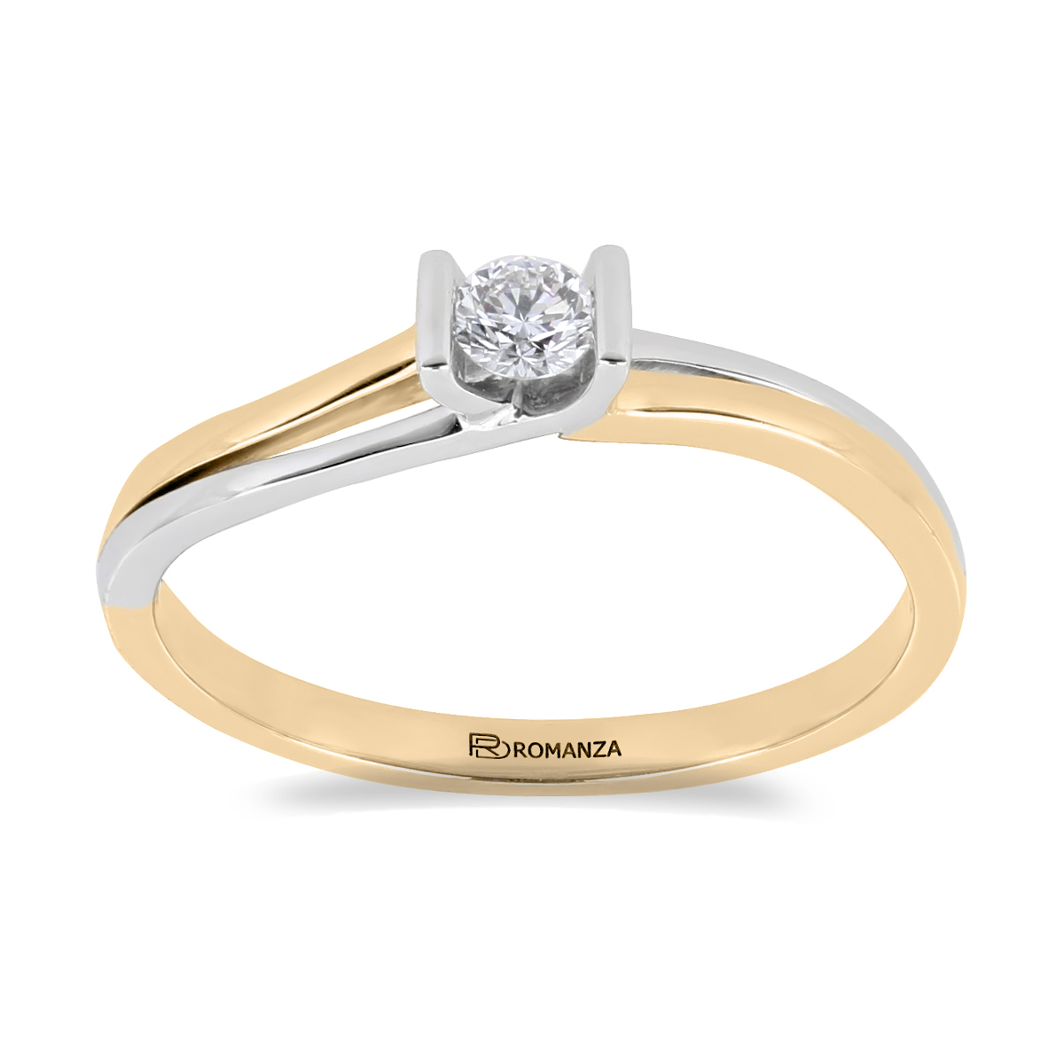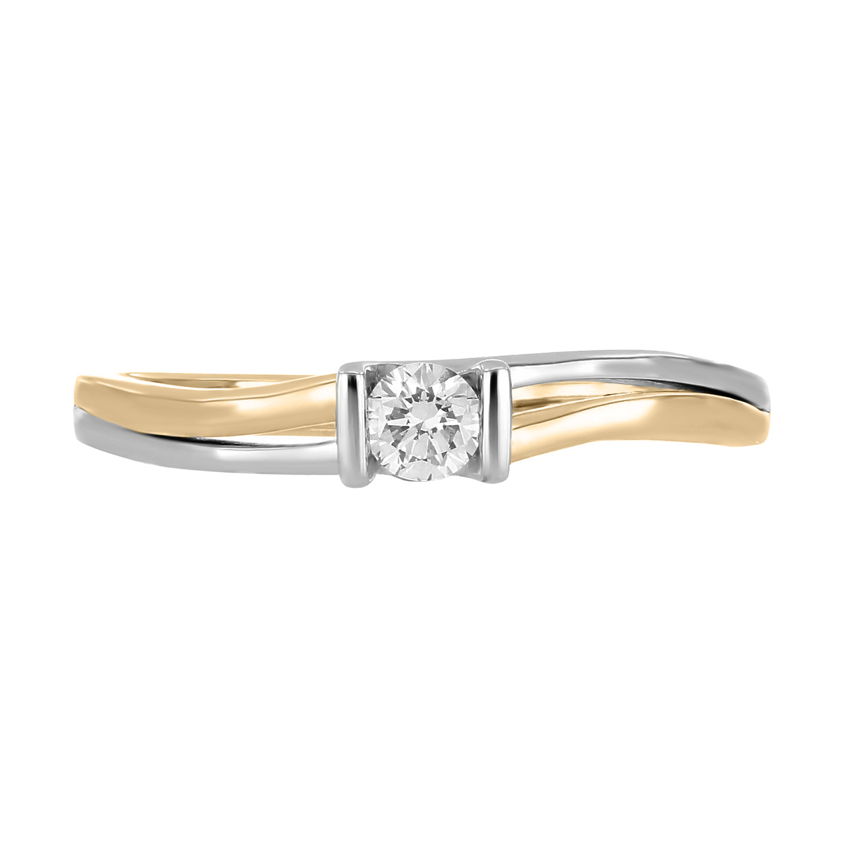 Anillo Solitario con Centro 0.15 Quilates de Diamante en Oro Combinado de 14 kt