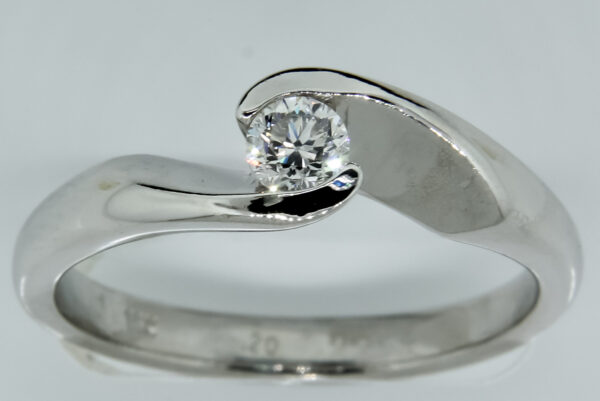 Anillo Solitario con Centro 0.20 Quilates de Diamante en Oro Blanco de 14 kt
