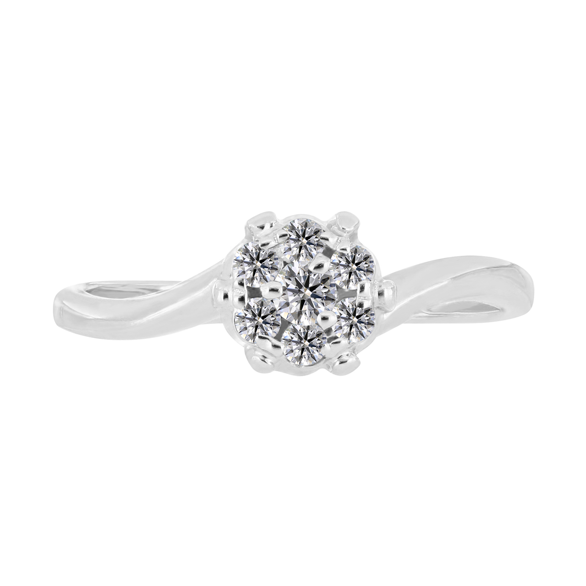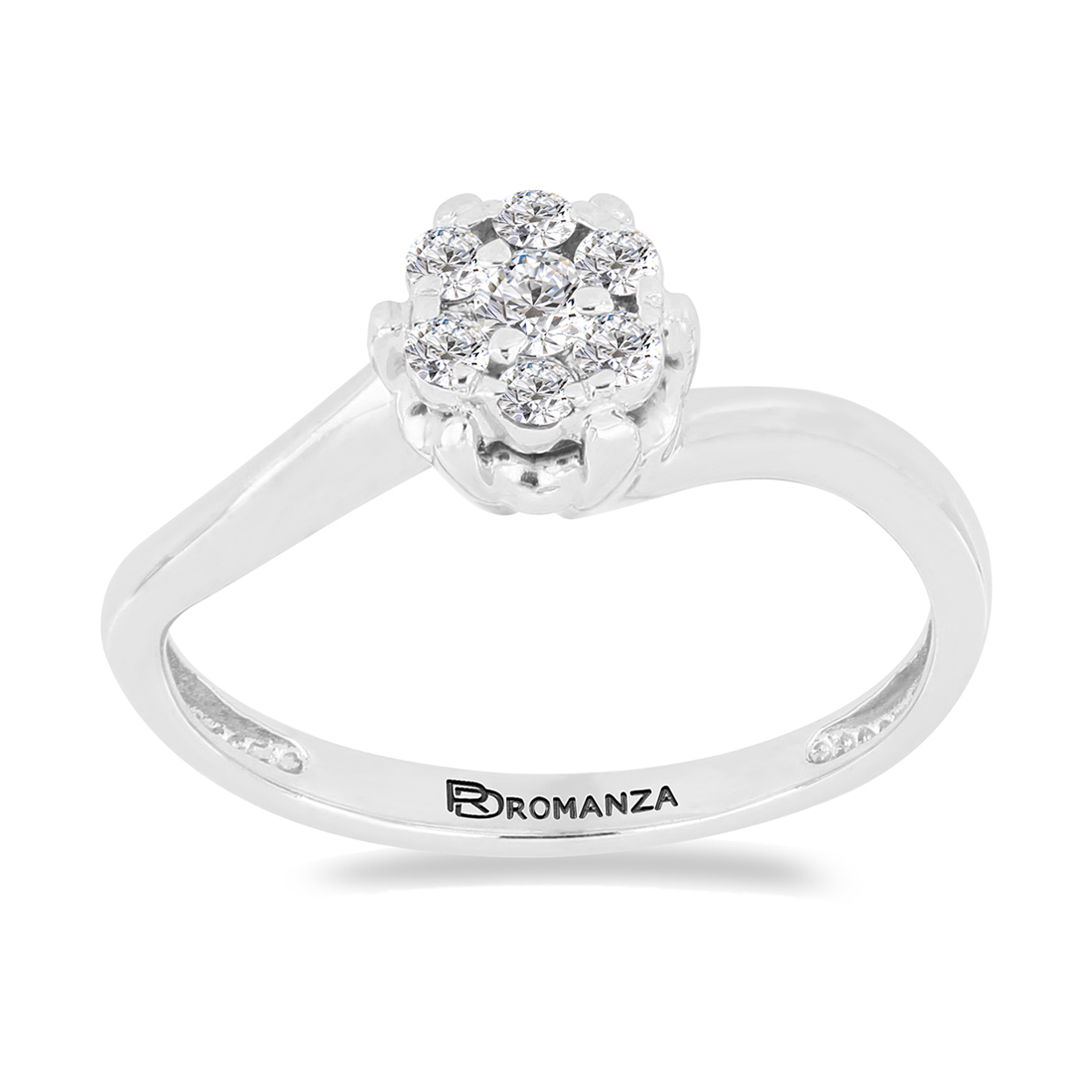 Anillo Solitario Roseta con Montadura 0.20 Quilates de Diamante en Oro Blanco de 14 kt