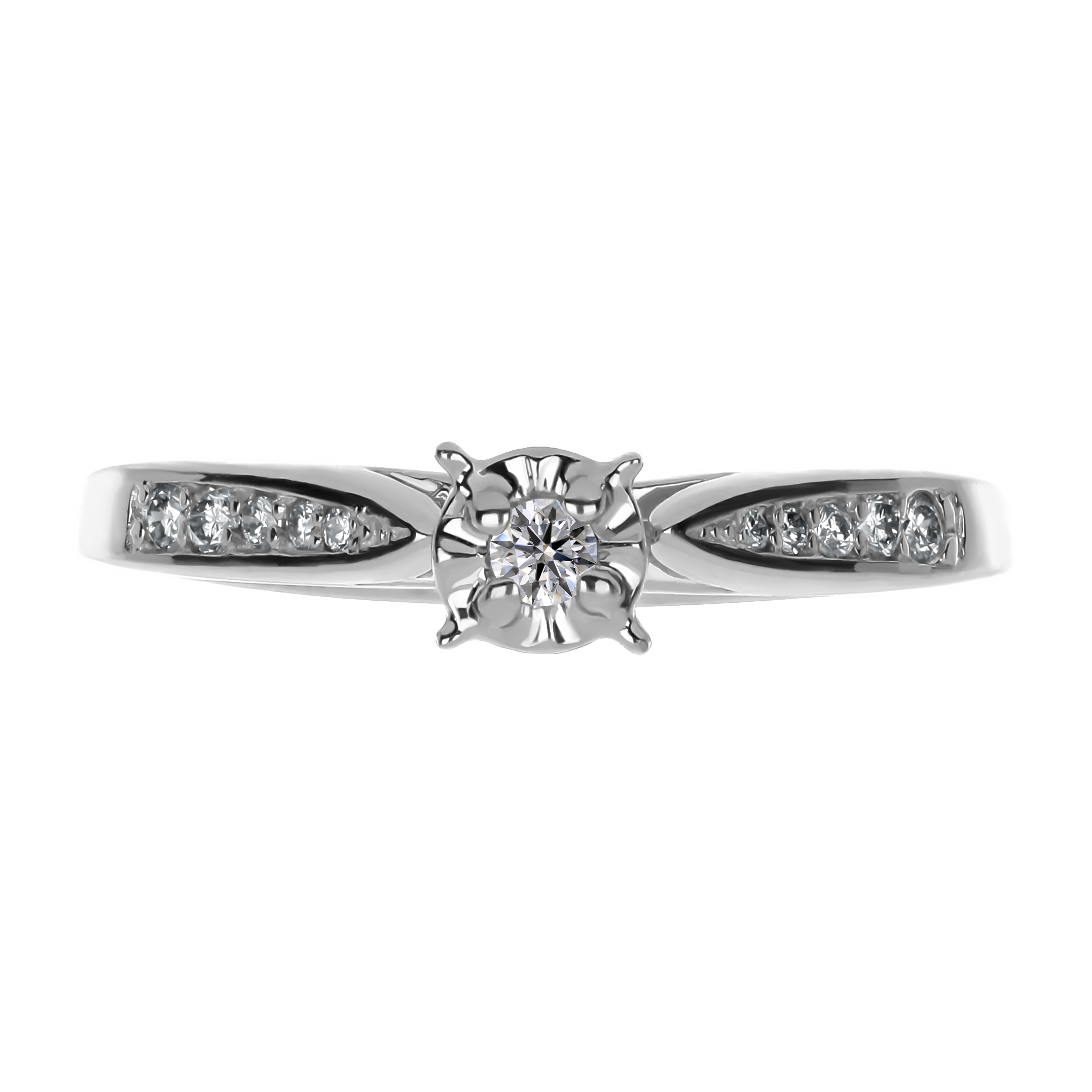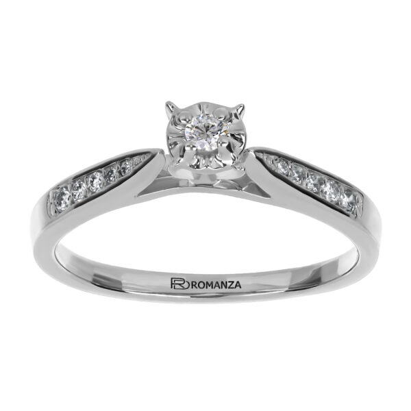 Anillo Solitario Ilusión con Montadura 0.16 Quilates de Diamante en Oro Blanco de 14 kt