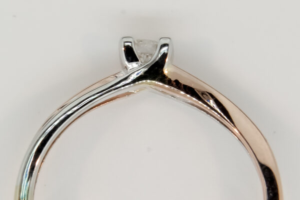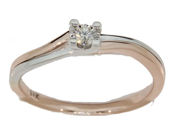 Anillo Solitario con Centro 0.10 Quilates de Diamante en Oro Combinado de 14 kt