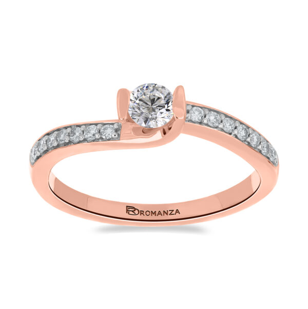 Anillo Solitario con Centro 0.25 Quilates y Montadura 0.14 Quilates de Diamante en Oro Rosa de 14 kt