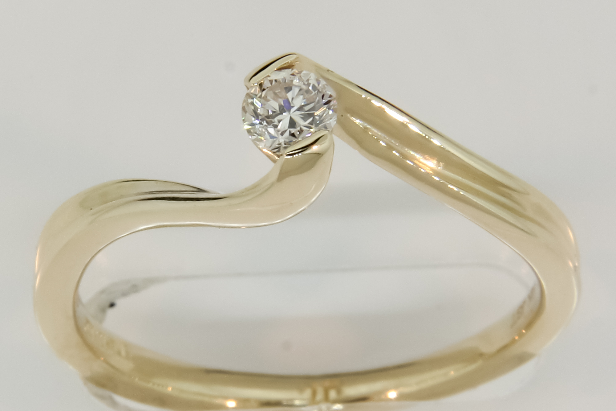 Anillo Solitario con Centro 0.17 Quilates de Diamante en Oro Amarillo de 14 kt