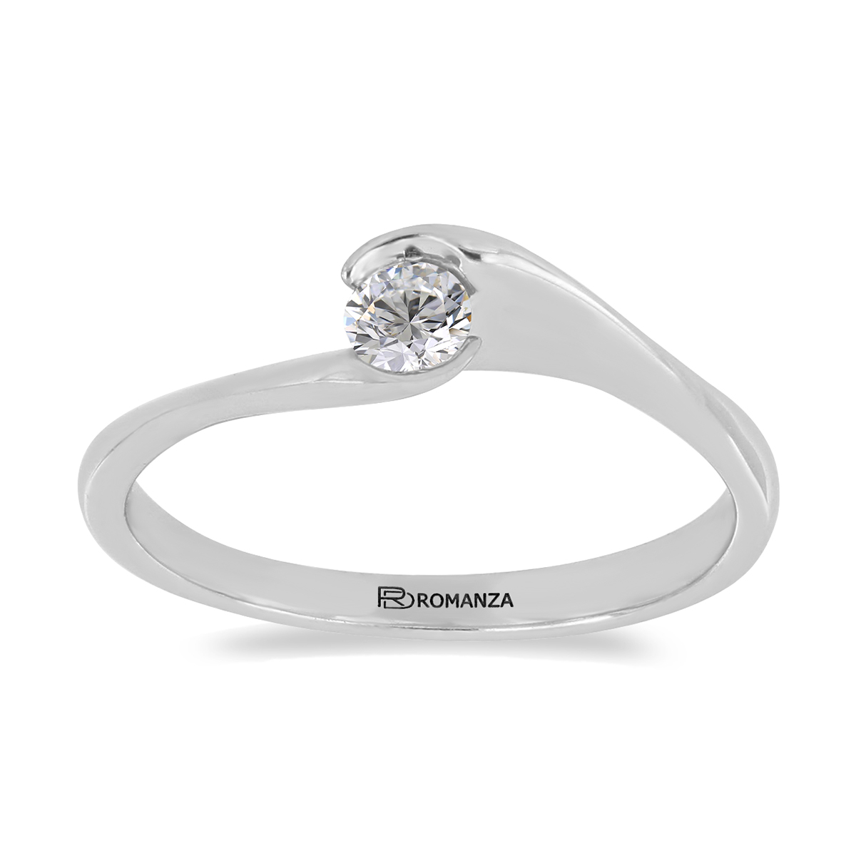 Anillo Solitario con Centro 0.17 Quilates de Diamante en Oro Blanco de 14 kt