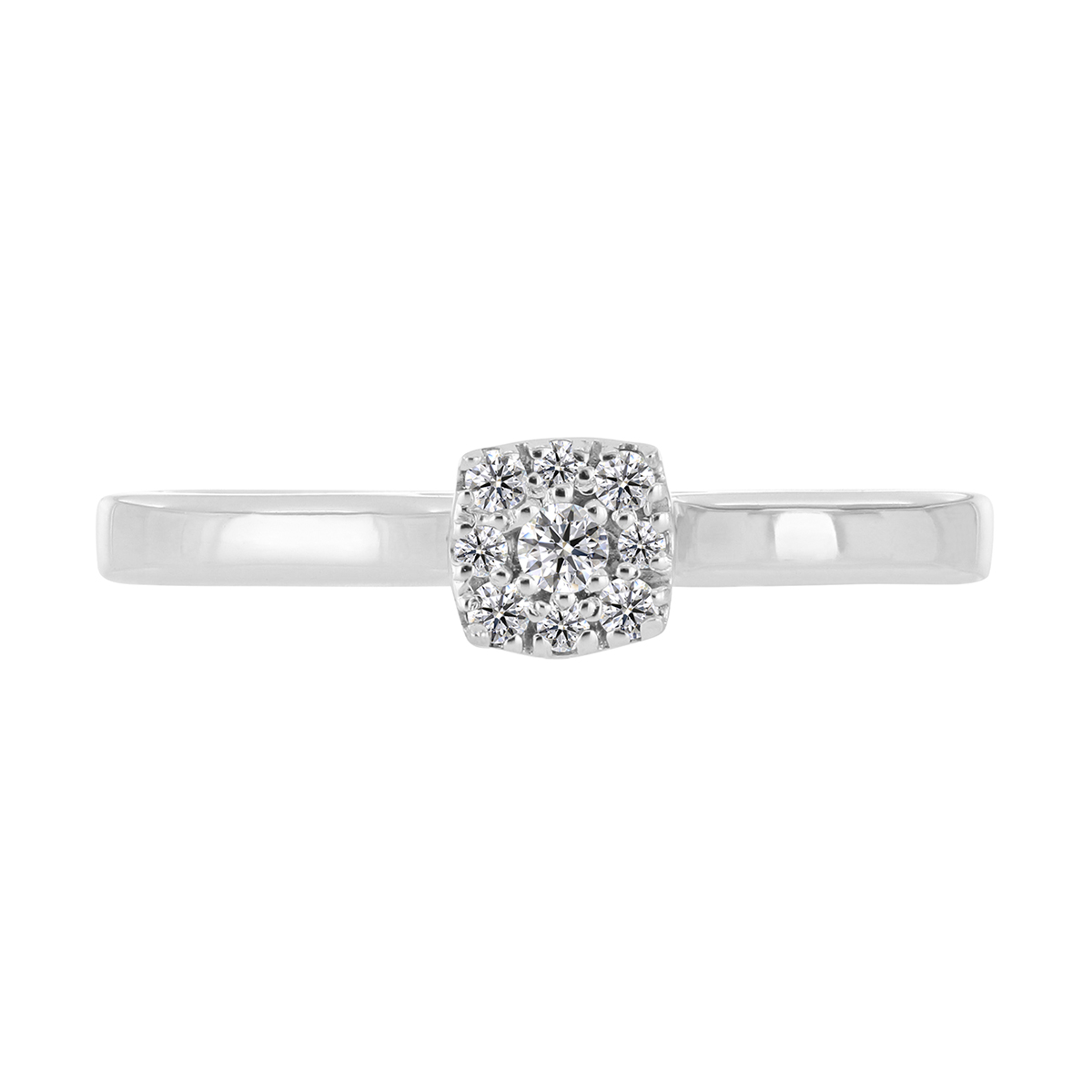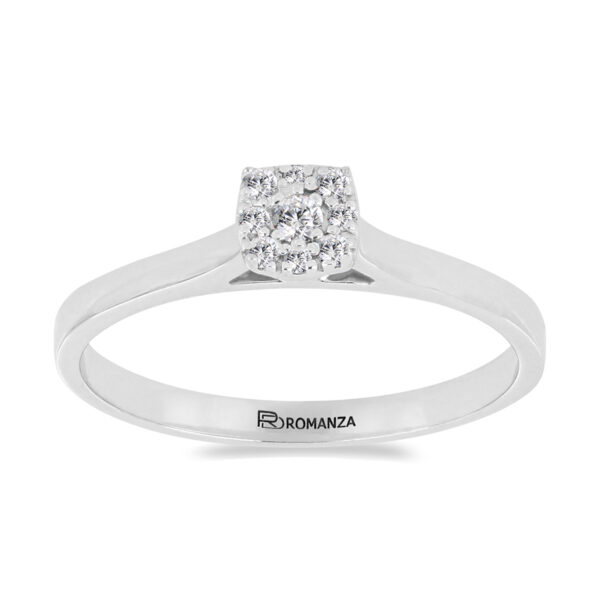 Anillo Solitario Roseta con Montadura 0.08 Quilates de Diamante en Oro Blanco de 14 kt