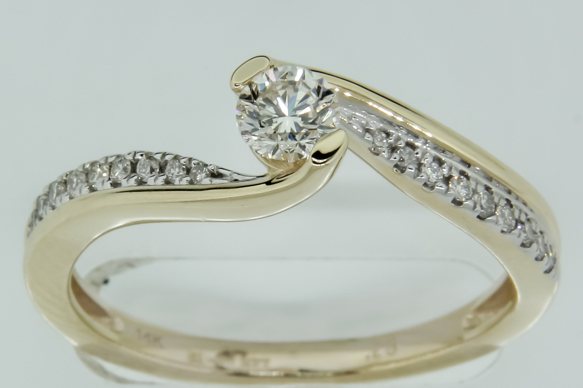 Anillo Solitario con Centro 0.25 Quilates y Montadura 0.12 Quilates de Diamante en Oro Amarillo de 14 kt