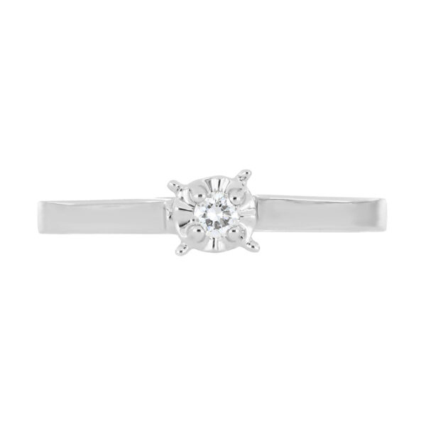 Anillo Solitario Ilusión con Centro 0.06 Quilates de Diamante en Oro Blanco de 14 kt