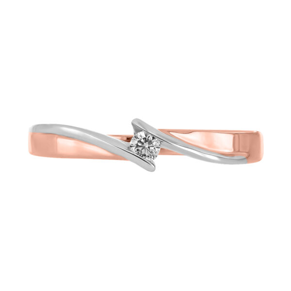 Anillo Solitario con Centro 0.06 Quilates de Diamante en Oro Combinado de 14 kt