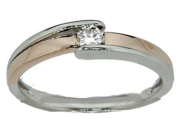 Anillo Solitario con Centro 0.10 Quilates de Diamante en Oro Combinado de 14 kt