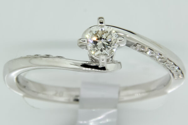 Anillo Solitario con Centro 0.20 Quilates y Montadura 0.14 Quilates de Diamante en Oro Blanco de 14 kt