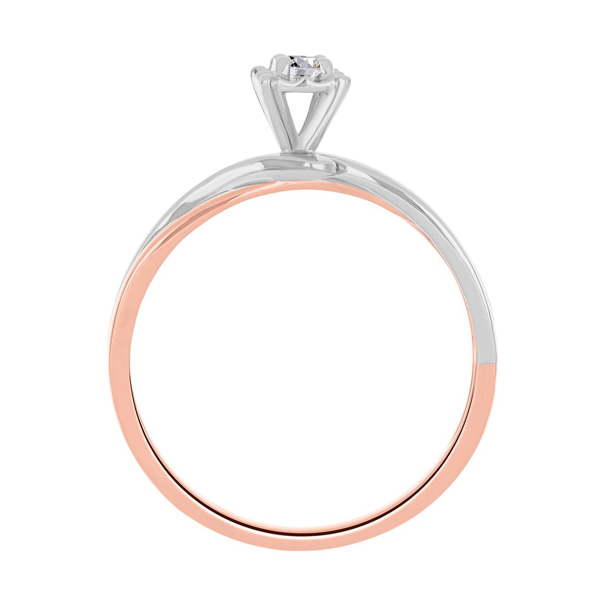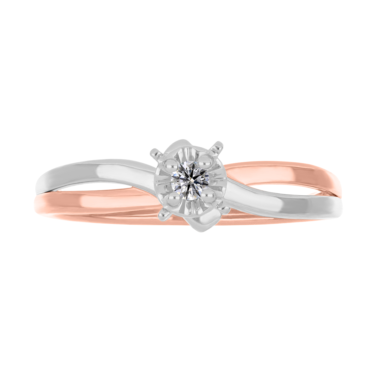 Anillo Solitario Ilusión con Centro 0.06 Quilates de Diamante en Oro Combinado de 14 kt