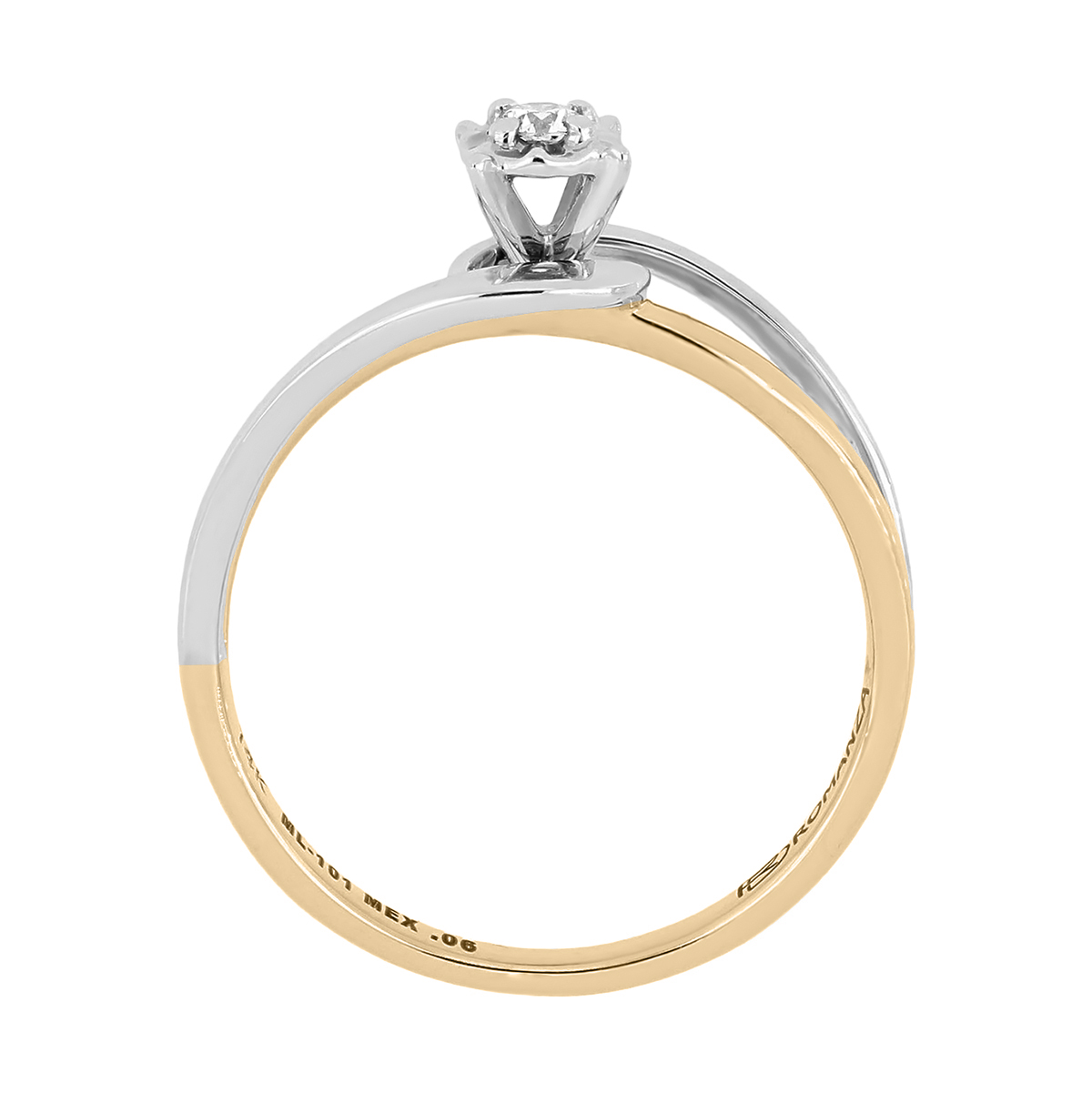 Anillo Solitario Ilusión con Centro 0.06 Quilates de Diamante en Oro Amarillo de 14 kt