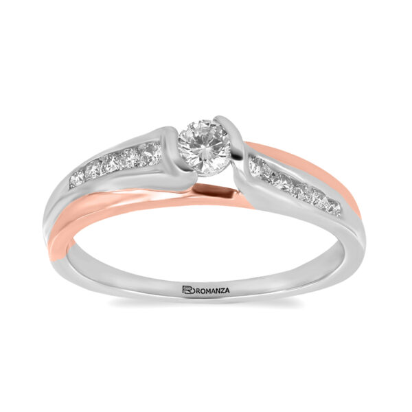 Anillo Solitario con Centro 0.17 Quilates y Montadura 0.18 Quilates de Diamante en Oro Combinado de 14 kt